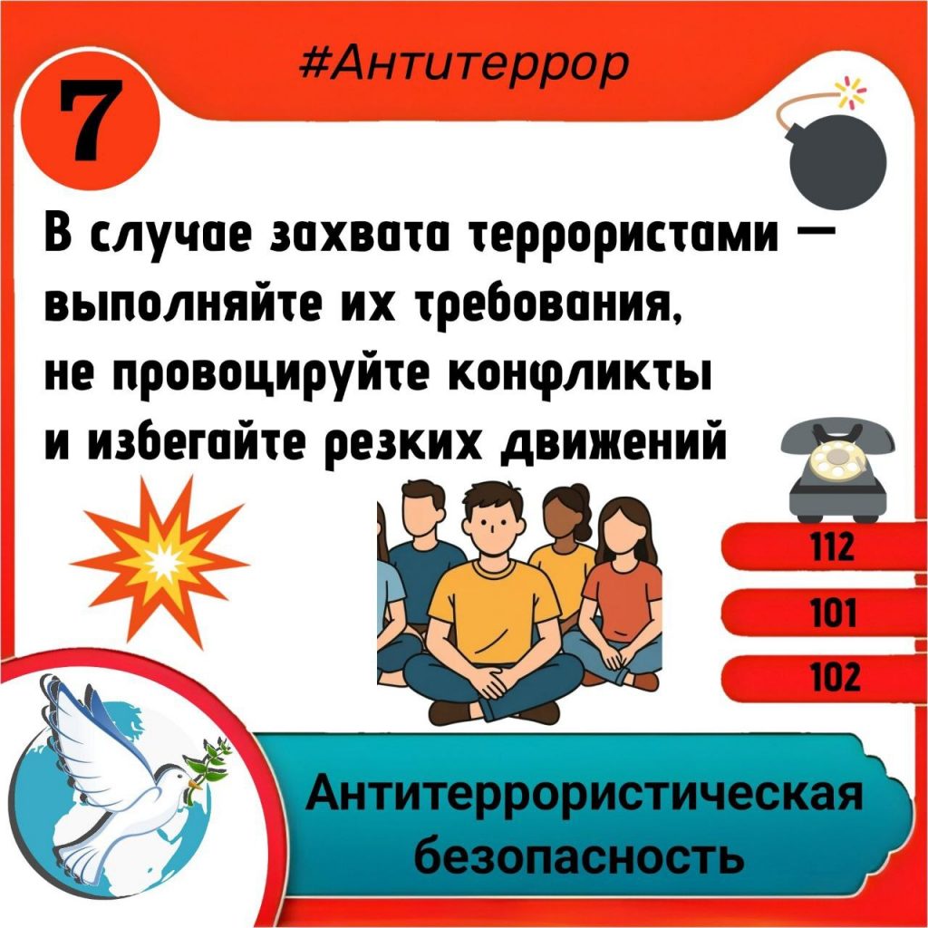• Случайно узнав о готовящемся теракте, немедленно сообщите об этом в правоохранительные органы.