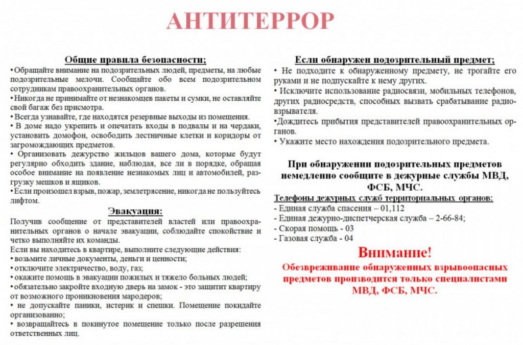 ПАМЯТКА ПО АНТИТЕРРОРИСТИЧЕСКОЙ БЕЗОПАСНОСТИ (март 2026)