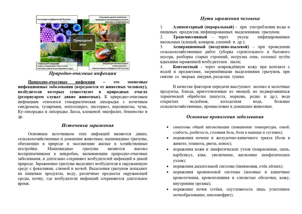 Памятки по ряду природно-очаговых и особо опасных инфекций